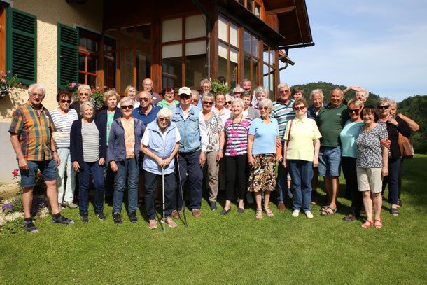 So stand am 15.Juni. 2021 eine Wanderung am Programm. Bei strahlendem Sonnenschein ging es dankenswerter Weise mit PKW´s einiger Mitglieder hinauf bis zum Landesgut am Remschnigg; von dort wanderten wir gemütlich und bei bester Laune gemeinsam zum Buschenschank Sternad-Lenz, vorbei an saftig grünen Wäldern, die uns Schatten spendeten,